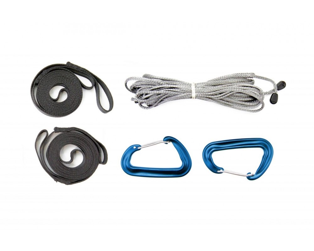 - materials: Dyneema ropes and webbing, aluminium carabiners